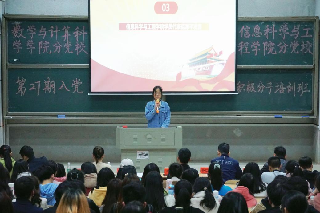 在齐唱国际歌后,范源平、向雨涛作为学员代表分别上台发言。她们均认为,作为一名积极分子,要端正入党动机,向革命先辈学习,向优秀共产党员学习,保持蓬勃向上、意气风发的精神,积极向党组织靠拢,发挥先锋模范作用,并承诺一定抓住学习机会,提高对党的认识。