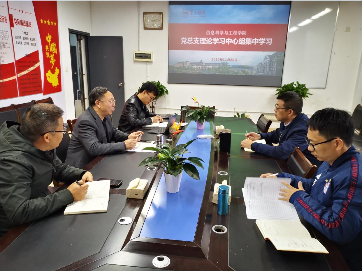 11月20日下午,学院党总支理论学习中心组在学院会议室举行了集中学习,在家总支委员和学院领导参加学习,会议由党总支书记王杰文主持。