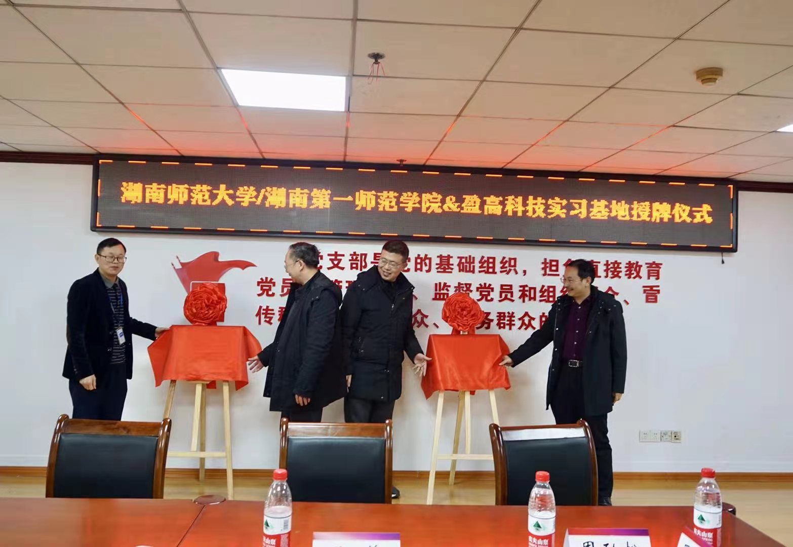 12月31日下午,“AWC万象城娱乐通信工程专业实习基地”揭牌仪式在盈高科技有限公司隆重举行。万象城官网党总支书记王杰文、副院长何向阳、通信工程专业教师代表王建军、孙元,盈高科技有限公司总经理叶启平、人事部经理廖丹出席了仪式。
