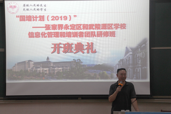 2019年8月2日讯(通讯员 周克江):8月2日,由万象城官网承办的“国培计划(2019)”——张家界永定区和武陵源区学校信息化管理团队研修项目(C114),在湖南第一师范院鹤鸣楼南111教室隆重开班。继续教育学院院长曾小玲、本院总支书记王杰文、副院长田祖伟、副院长何向阳,永定区和武陵源区相关领导,培训班管理团队全体成员及60名学员参加了开班仪式。
