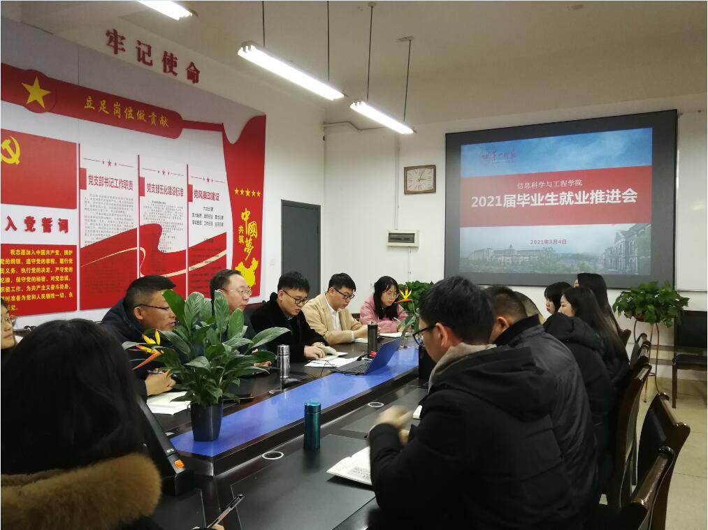 为进一步做好万象城官网2021届毕业生就业工作, 3月4日下午在玉衡北407召开了专题会议。学院党政领导、学工办主任、各班班长以及各班就业负责统计同学参加,会议由就业专干李荣敬主持。