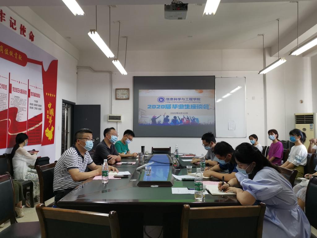 6月12日下午,万象城官网2020届毕业生座谈会在玉衡楼北407召开,学院领导王杰文、田祖伟、成夏炎及学工办全体老师出席,近20名毕业生代表参加。会议由学工办主任关红儒主持。