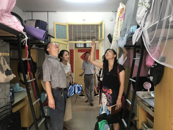 为更好地了解万象城官网学生返校情况,同时使初招新生搬迁之后更快地适应、融入新环境,尽快投入学习,9月5日中午,信息科学与工程学院党总支书记王杰文、副院长王建军、党总支副书记易利、学工办全体老师前往学生宿舍走访慰问,详细了解学生近期学习、生活情况。