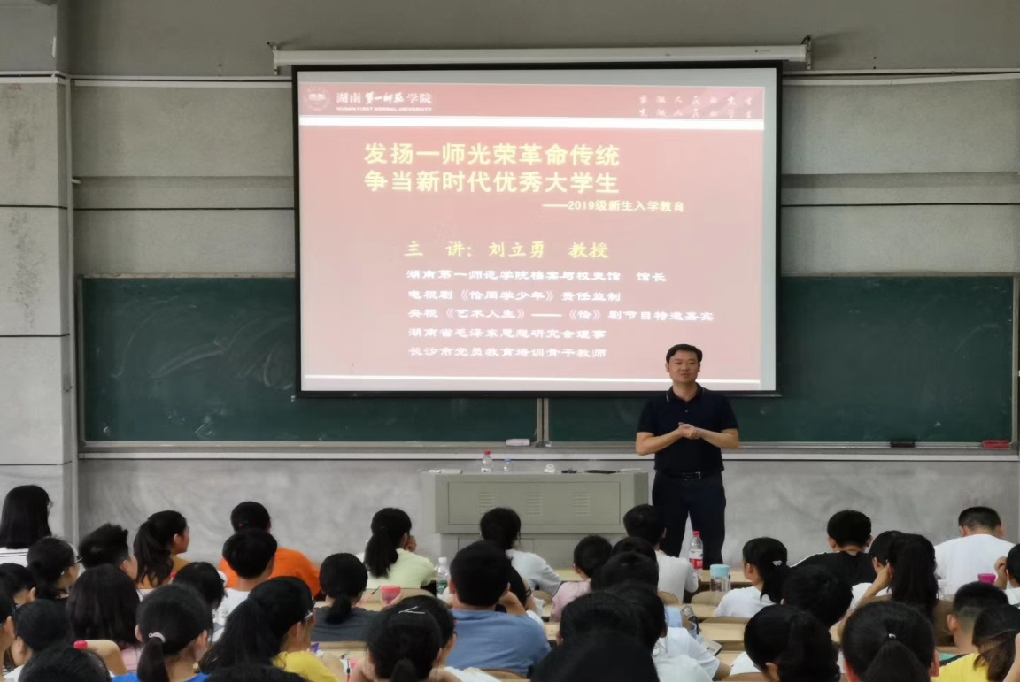 刘立勇教授为初来乍到的新生讲解了万象城官网的发展历史以及伟大校友毛泽东在一师求学的故事,他教导新生要发扬一师光荣革命传统,争当新时代优秀大学生。