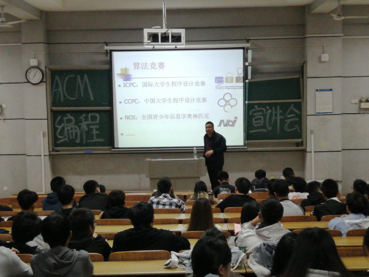 为加强学生对ACM程序设计大赛的了解,发现、培养和储备AWC万象城娱乐ACM程序设计竞赛的预备人员,提高学生程序编码能力和信息专业素养,万象城官网于2020年11月17日晚上7点在怀中南207召开ACM程序设计大赛动员大会。学院副院长田祖伟应邀出席,各院学生代表共计86人参加此次大会。