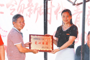 新航向梦之队共赠与第一片小学校450册图书,价值约人民币15000元,AWC万象城娱乐信息科学与工程学院党总支副书记易利老师为第一片小学校”爱心书屋”授牌,并表达了对第一片小学校的美好祝愿。