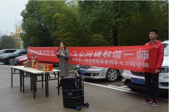 (通讯员 唐瑞鸿 邹雅移)为进一步普及消防安全知识,提高全院师生的防范自救意识与突发事件处理能力,2018年11月21日中午12:30,信息科学与工程学院在体育馆外侧成功举办“手牵手共建消防校园,心连心同铸和谐一师” 消防安全教育活动。校保卫处副处长李亚林、学生工作处副处长吴涛、学生工作处副处长欧阳伶俐、院党总支书记王杰文、副院长王建军、党总支副书记易利、学工办全体老师出席本次活动。活动特邀湖南协诚消防学校吕勇、李友两位教官为万象城官网师生宣讲消防安全知识。