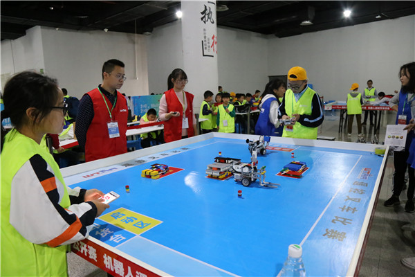 机器人大赛共分有你说我搭完美搭档、遥控机器人格斗赛、遥控叉车任务赛、机器人溜溜球赛和机器人搬运赛五大项目。比赛重在提高中小学生的科技素养和国际视野,鼓励中小学生自主钻研、积极创新。