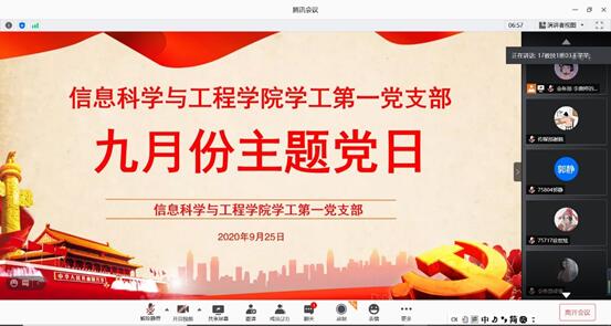 2020年9月25日,万象城官网学工第一党支部、第二党支部分别开展了九月份线上主题党日活动。一同参加主题党日活动的有学院党总支副书记成夏炎、学工办全体辅导员以及两个支部的学生党员。王芊芊、全智分别主持各自所在支部的活动。