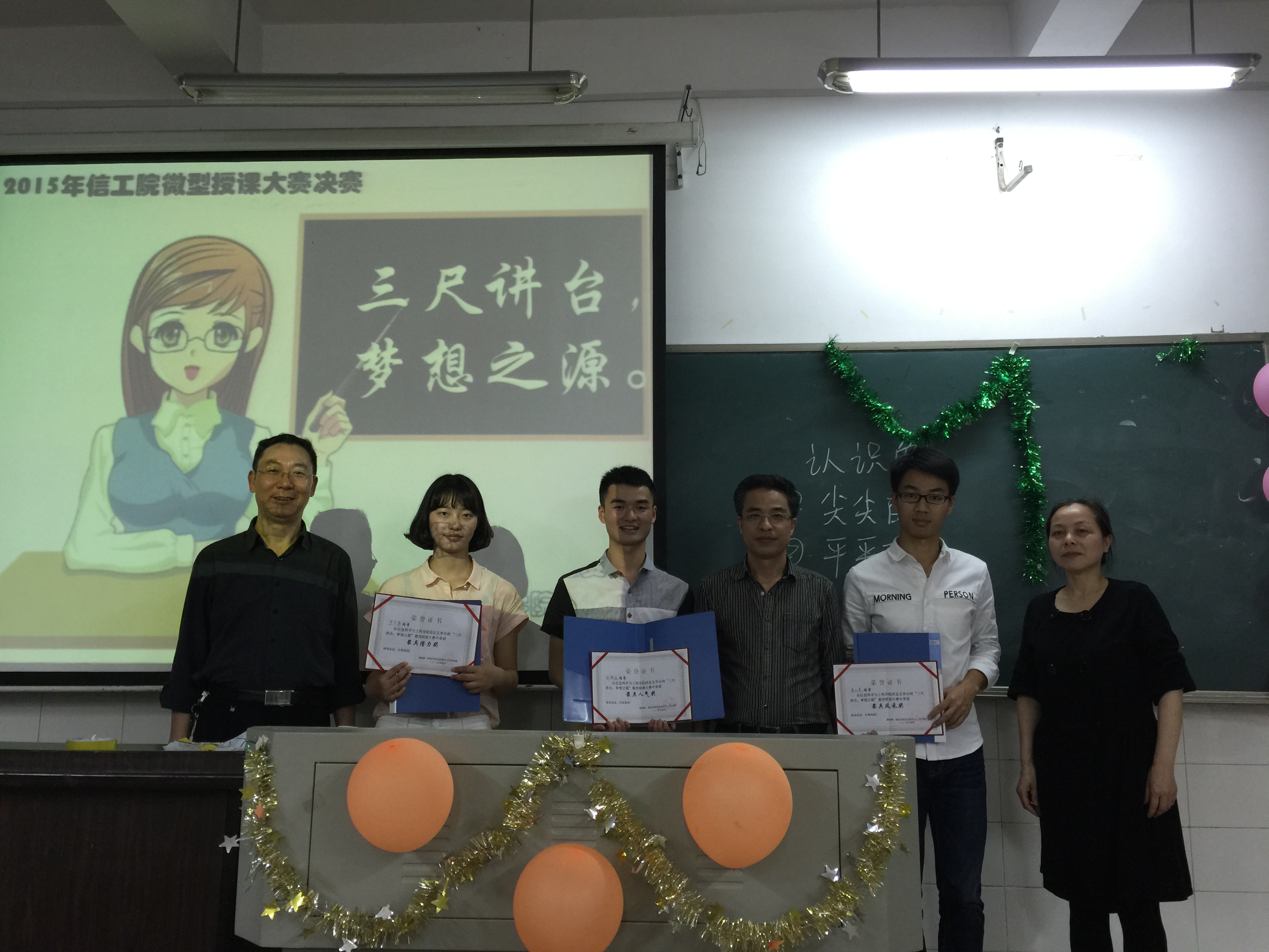 (通讯员易利) 4月29日晚9点30分,由信息科学与工程学院团总支举办的“三尺讲台梦想之源”第四届微型授课比赛决赛在东方红校区理C301教室圆满落下帷幕。本次比赛分为初赛和决赛两部分:初赛(4月27日)从全院各班推选的53位选手中选拔出13位优秀选手;决赛评选出特等奖1名,一等奖2名,二等奖3名,三等奖4名,鼓励奖3名。