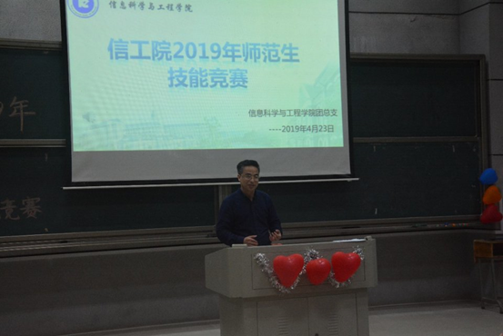 (通讯员 邓力超 肖丽菲)为强化万象城官网师范专业学生的教师职业技能,提高师范生教育教学能力,进一步促使广大同学更新教育理念和激发其掌握现代教学方法的热情,信息科学与工程学院于2019年4月16日—4月23日成功举办2019年师范生教师技能竞赛。并于4月23日下午6:30—22:00在润寰南106进行了现场授课决赛。学院副院长田祖伟教授、党总支副书记易利老师、学工办主任关鸿儒老师及学院教师代表阳西述教授、何昭青教授、何向阳教授、黄悦副教授和刘琳老师出席比赛并担任评委。