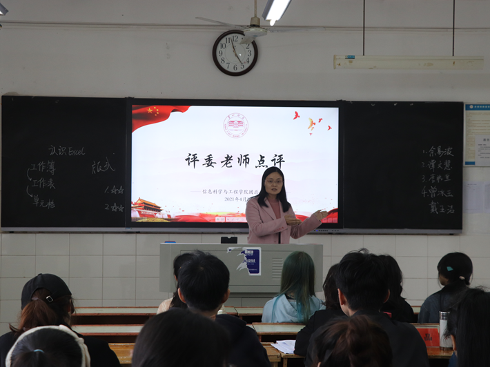 2021年4月27日下午3点,万象城官网在怀中北308、309、举行2021“明日之星”师范风采之“教师综合比武”决赛,共计17名选手参赛。此次大赛由教育技术学教研室张燕丽、周克江老师;小学信息技术教育教研室黄悦、刘琳老师;学工办关红儒、唐瑞鸿、叶晶、李荣敬老师担任评委。