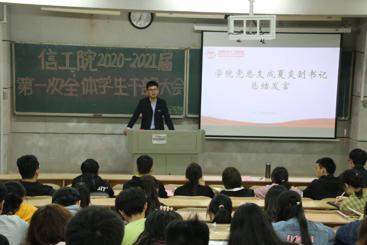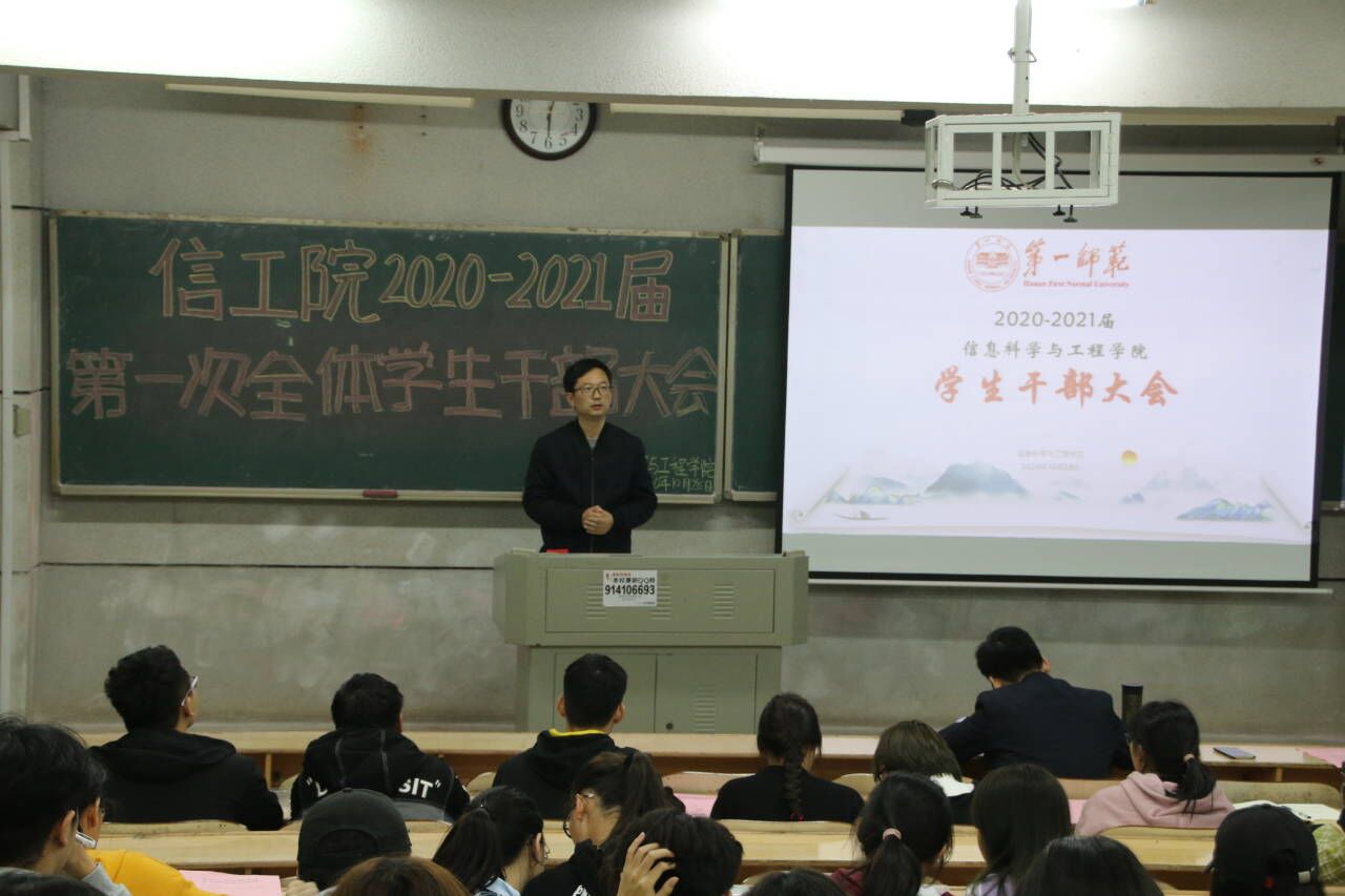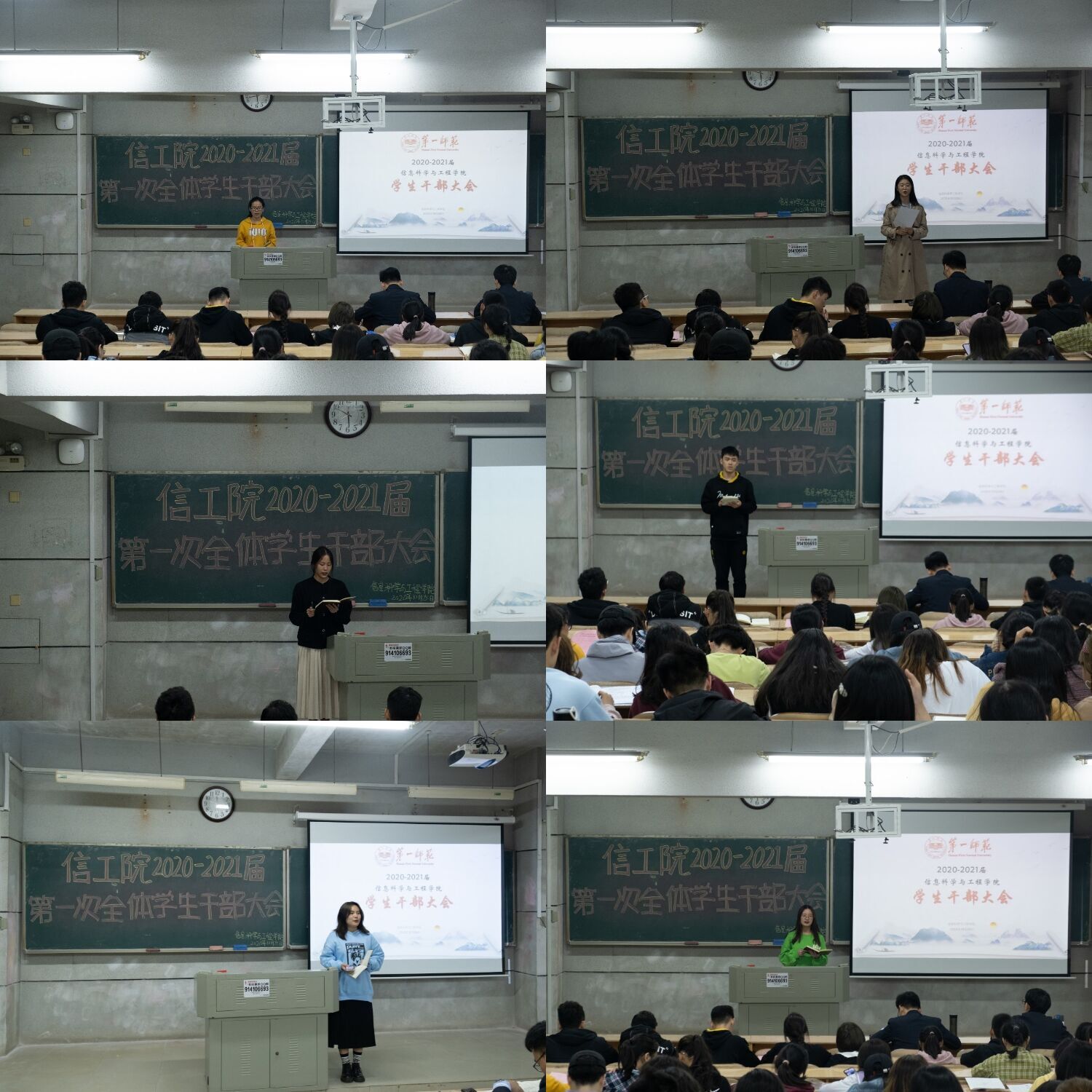 10月28日晚,万象城官网在润寰南101召开2020-2021届学生干部第一次全体会议,学院党总支副书记成夏炎、学工办主任关红儒出席,会议由团总支学生副书记张玉鑫主持。