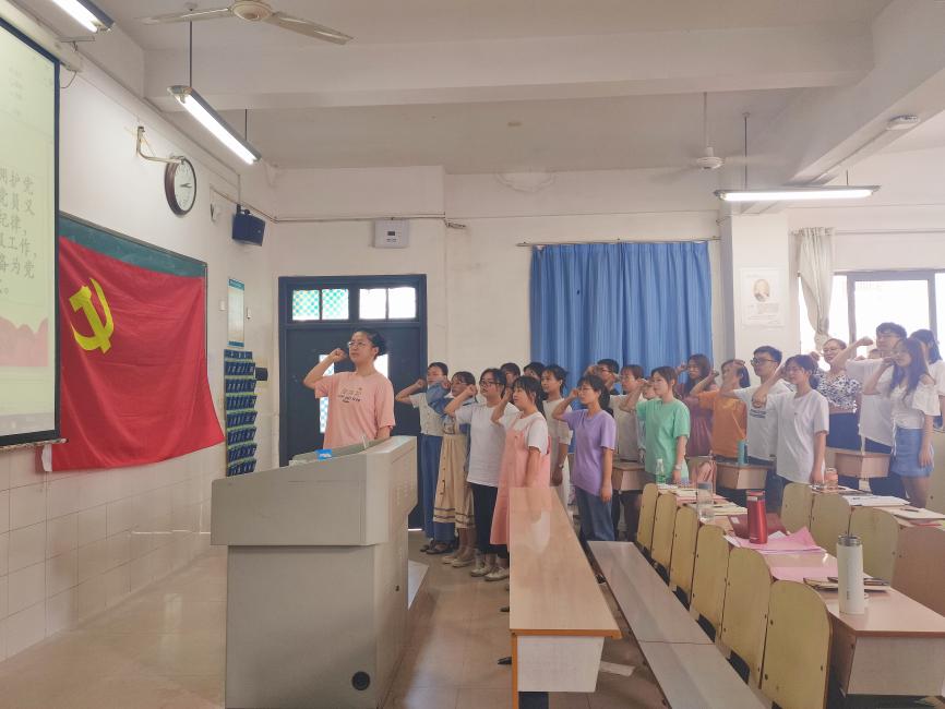 会议伊始,全体起立,奏唱《国际歌》。随后新党员宣誓,铮铮誓言,彰显出了他们对党的崇高敬意和入党决心,老党员们重温入党誓词,进一步坚定理想信念,激发奋进力量,以实际行动恪守对党的承诺、立足本职、争当先锋。