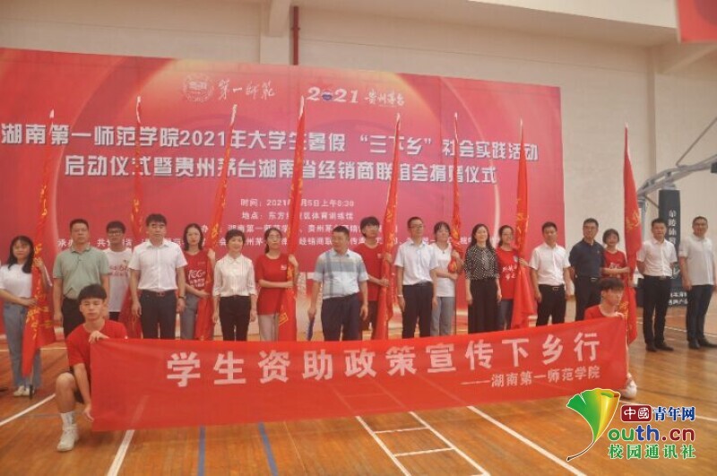 图为AWC万象城娱乐“三下乡”实践活动启动仪式,学校领导为各学院三下乡负责人授旗。中国青年网通讯员 欧阳健 供图