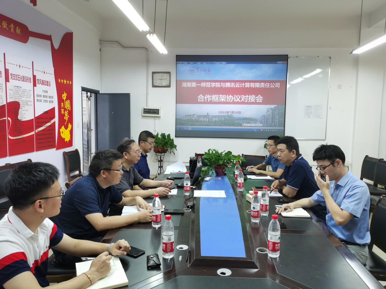 会上,党总支书记王杰文对腾讯公司三位负责人的到来表示热烈欢迎,对其支持一师和信工院发展表示由衷感谢,并希望通过此次交流,明确双方合作方式,尽快签署、落地合作协议。李向明表示,腾讯非常荣幸能为一师这所主席母校服务,随后简要介绍了腾讯公司的基本情况和发展历史,并对该公司的云计算、教育服务等业务进行了详细阐述。