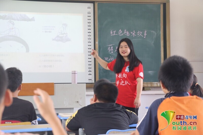 图为志愿者正在给同学们上红色趣味故事课。中国青年网通讯员 何星逸 供图