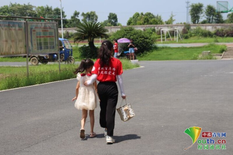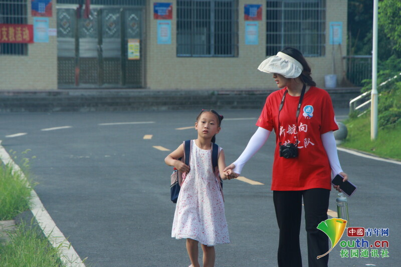 图为放学时,班主任送没有家长来接的学生回家,期待明天的相遇。中国青年网通讯员 欧阳健 摄。