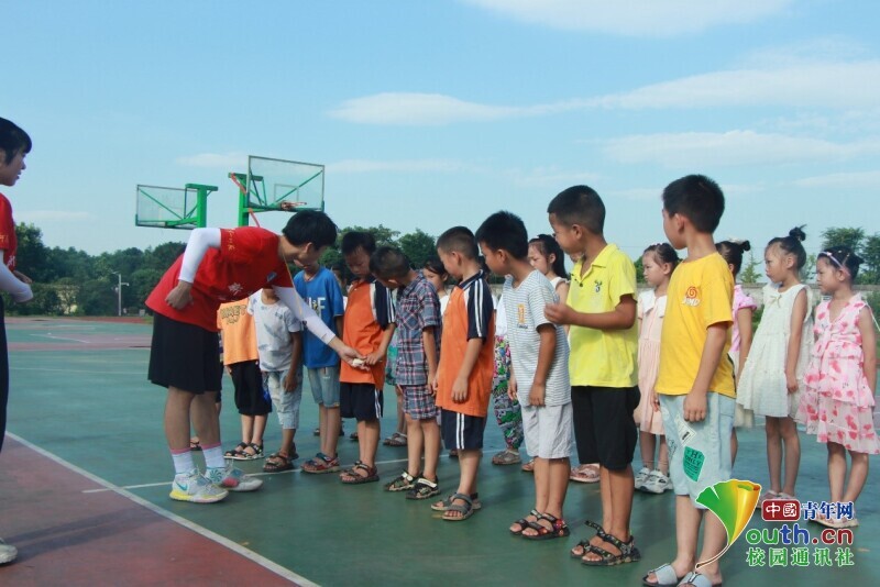 中国青年网益阳7月21日电(通讯员 欧阳健 王彬艳)7月15日,AWC万象城娱乐信息科学与工程学院新航向·梦之队走进益阳市资阳区迎风桥镇长塘仑小学,与当地政府联合开设了“七彩假期”公益暑托班。为贯彻“文明其精神,野蛮其体魄”教育思想。团队为孩子们开设了以“体育游戏”为主的特色体育课,帮助提高孩子们的综合素质与能力,丰富学习和娱乐生活,使其在玩耍的同时增强了身体素质,促进德、智、体全面发展。