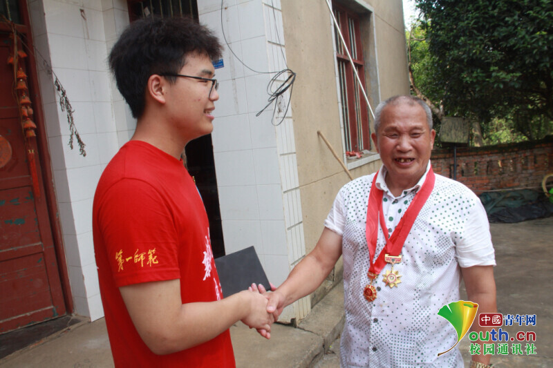 图为老党员为新航向·梦之队志愿者们讲述参加“抗美援越”战争的经历,志愿者们深受感动。中国青年网通讯员 欧阳健 摄