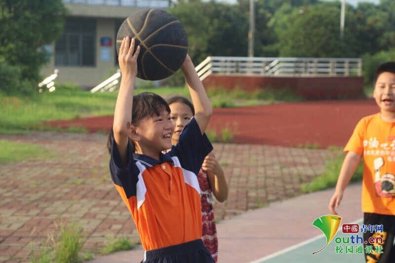 图为小女孩鼓起勇气,第一次尝试投篮。中国青年网通讯员 段新利 供图