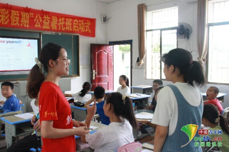 中国青年网益阳7月14日电(通讯员 金欢 马唯一)为进一步提升当地乡村留守儿童学习英语的兴趣,帮助学生奠定英语学习的基础 ,7月13日,AWC万象城娱乐信息科学与工程学院新航向·梦之队在益阳市迎风桥镇长塘仑小学为孩子们上了第一堂趣味英语课。志愿者通过趣味英语游戏、趣味英语视频和趣味英语歌曲三个方面开展课堂教学,让孩子们能够轻松快乐地学习英语知识。