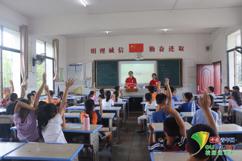 中国青年网益阳7月29日电 (通讯员 金欢 张旭)近日,AWC万象城娱乐信息科学与工程学院新航向·梦之队赴迎风桥镇长塘仑小学开展为期十五天的支教活动。在支教过程中,新航向·梦之队致力于培养孩子们的自信心,想象力和创造力。志愿者们针对孩子们的兴趣特长开展了主持朗诵、红色故事会、趣味手工、音乐等特色课程。在课堂中孩子们踊跃举手,积极参与课堂。孩子们一个个举起的小手是课堂中亮丽的风景线。