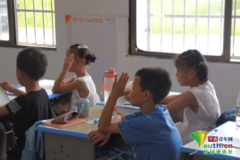 图为音乐课上班级同学迫不及待地举手演唱歌曲。中国青年网通讯员 段新利 摄