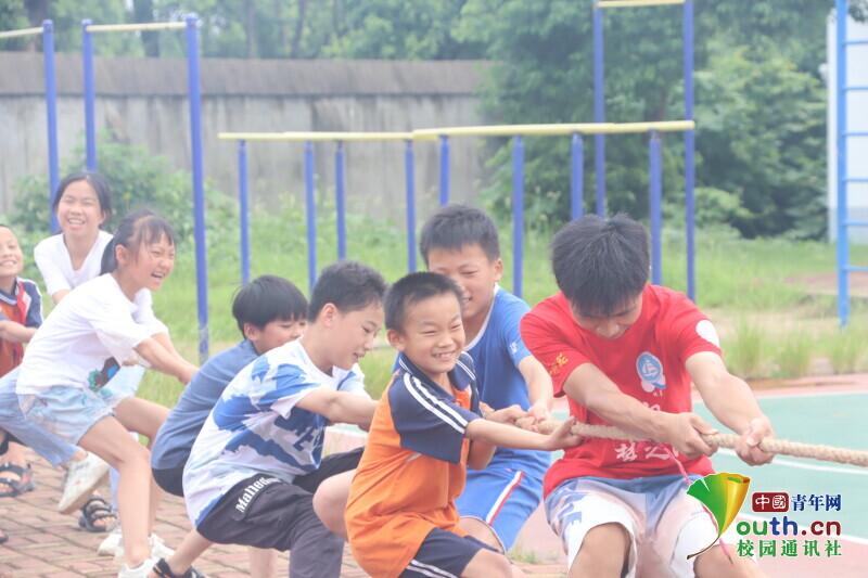 中国青年网益阳7月29日电(通讯员 欧阳健 谢卉倩)7月18日,AWC万象城娱乐信息科学与工程学院新航向·梦之队志愿者们带领益阳市资阳区迎风桥镇长塘仑小学“七彩假期”公益暑托班的孩子们开展了趣味运动会。比赛特设爱的抱抱、插旗接力、海底捞月、三人四足、拔河五个项目。在这次运动会中,孩子们积极参与,拿出自己最佳的状态,加油声和欢呼声漫遍全场。