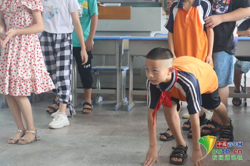 图为“耶!我们赢了。”老师宣布小黄人组获胜后,学生们激动地跳了起来。中国青年网通讯员 段新利 摄