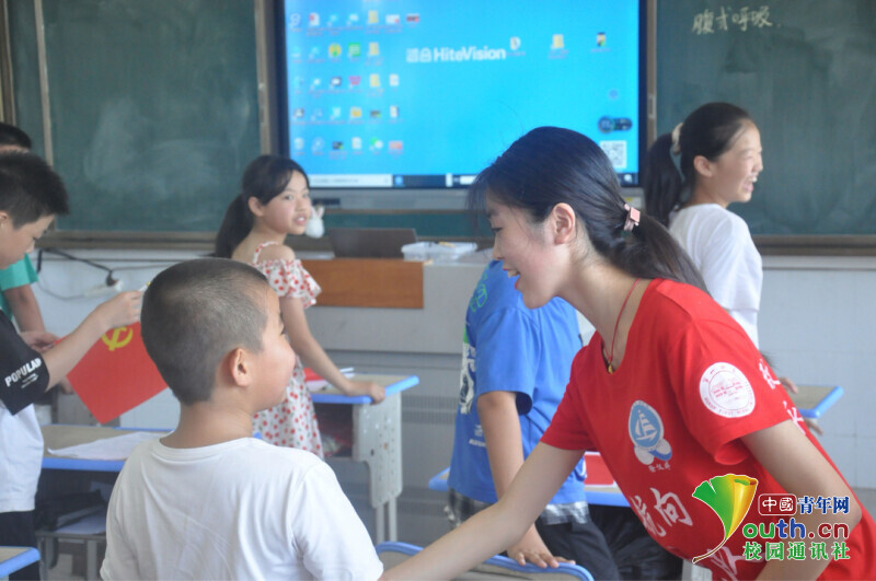 中国青年网益阳8月3日电(通讯员 谢卉倩 周泰成)7月19日,AWC万象城娱乐信息科学与工程学院新航向·梦之队走进益阳市资阳区迎风桥镇长塘仑小学,与当地团委联合举办的“七彩假期”公益暑托班已经历九天的多彩生活。语言是人与人之间交流的桥梁,是维持人与人之间情感的纽带,它是日常生活中不可或缺的一部分,凝聚着无数人的智慧。为让贫困山村的留守儿童先从语言上“立起来”,推进当地乡村振兴,特开展普通话推广课程。 同时,以学习红色精神为主题,引导学生树立“感党恩,跟党走”的理想信念,培养学生爱党爱国的情怀。