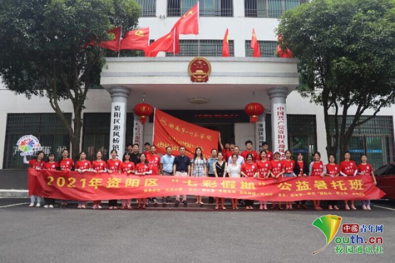 图为队员们与迎风桥镇政府领导合影留念。中国青年网通讯员 段新利 摄
