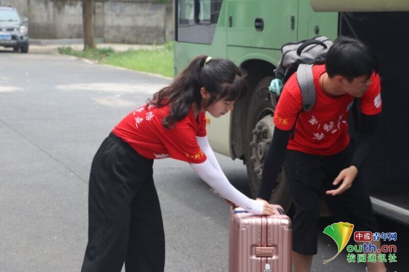 图为队员卸载带给小朋友们的物资与行李。中国青年网通讯员 段新利 摄