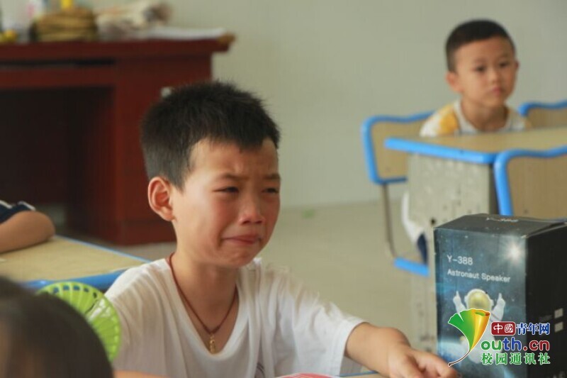 孩子们面对着讲台上泣不成声的老师,凝视着手上的奖品与信件,伤心地流下眼泪,用拥抱、写留言条等方式向队员们表达着不舍。
