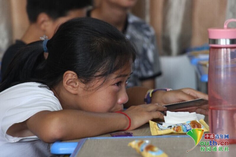 图为一名同学趴在桌上伤心地流着眼泪。中国青年网通讯员 欧阳健 摄
