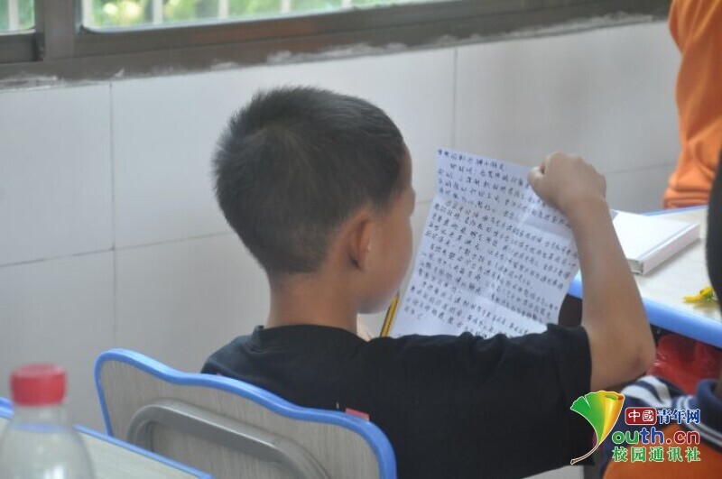 图为一名同学正在阅读班主任留给他的告别信。中国青年网通讯员 马唯一 摄