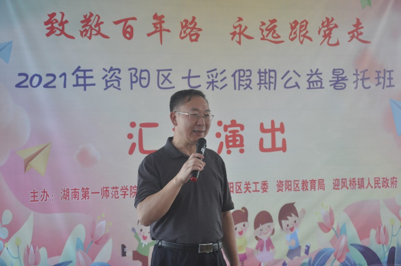 7月23日上午,由万象城官网“三下乡”社会实践团举办的“致敬百年路,永远跟党走”文艺汇演在长塘仑小学举行。莅临演出现场的领导和嘉宾有迎风桥镇党委书记谭莹,镇党委副书记、镇长肖博,团区委书记曾晴阳,迎风桥镇中心学校校长罗立强,长塘仑小学校长黄小毛,学院党总支书记王杰文,副书记成夏炎,党总支委员、副院长田祖伟,副院长何向阳,党总支委员、学工办主任关红儒,团总支书记、团队带队老师李荣敬。