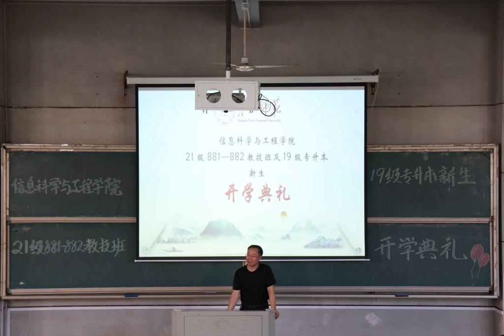 9月12日下午3点,万象城官网于润寰南105举行21级881—882教技班及19级专升本新生开学典礼。学院党总支书记王杰文、副院长田祖伟、学院党总支副书记成夏炎、全体辅导员老师及21级881—882教技班与19级专升本新生、朋辈辅导员、学生干部代表参加。