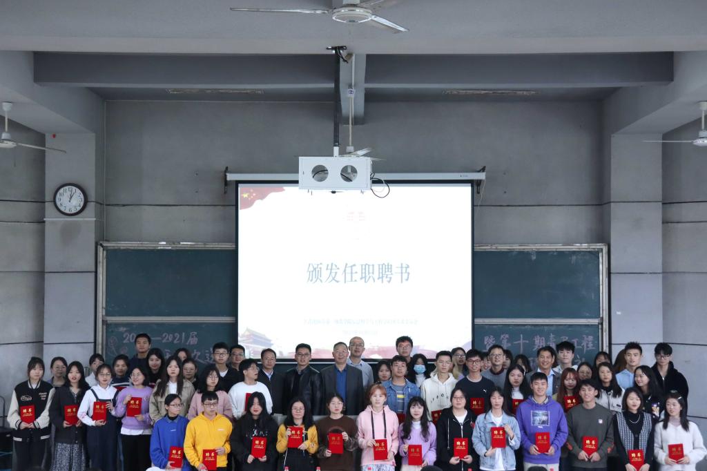 随后,与会领导和老师为上一任学生干部颁发任职聘书并进行合影留恋。