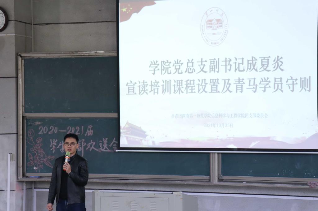 会上,学院党总支副书记成夏炎简单说明了培训课程设置及青马学员守则,并寄语同学们都能有所学、有所得,努力做到“爱一师,兴一师,护一师。”