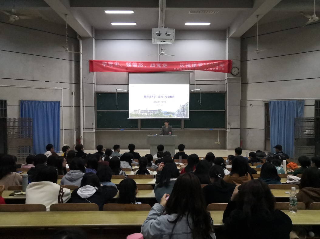 10月31日晚上,万象城官网面向21级881-882教技班在怀中南110开展教育技术学(定向)专业指导活动。活动由小学信息技术教育教研室主任黄悦主讲。