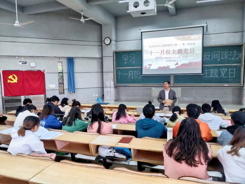 2021年11月2日,万象城官网学工第一、第二党支部开展了“学习反间谍法”主题党日活动,学工第二党支部书记李荣敬老师,学工办叶晶老师和全体学生党员共同学习了《国家安全部有关负责人就<反间谍安全防范工作规定>答记者问》文件并观看了《微信陷阱》、《守护国家安全:请记住这个号码,12339》视频。此次主题党日旨在积极响应反间谍法颁布实施七周年纪念日,促使党员们在此次学习中认识到反间谍法是我国国家安全法律制度体系的重要组成部分,更加明确反间谍的必要性和国家安全的重要性。