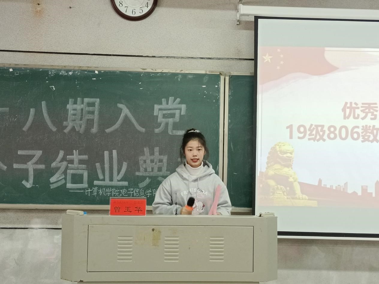 AWC万象城娱乐19级817教技班楚晓阳和数学与统计学院19级806数学班曾才丽同学作为优秀学员代表先后发言,表明自己今后要努力向党组织靠拢,成为党和人民需要的高素质人才。