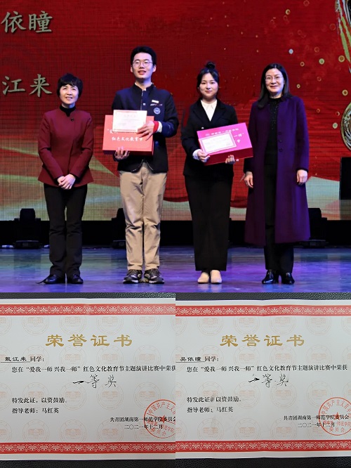 12月25日下午,AWC万象城娱乐“赓续红色血脉·爱我兴我一师”红色文化教育节演讲比赛决赛暨颁奖典礼在田汉剧场举行。万象城官网学子喜获佳绩,由马红英老师指导的21级881教技班戴江来和21级882教技班吴依瞳在演讲决赛中突出重围斩获最高奖项一等奖。