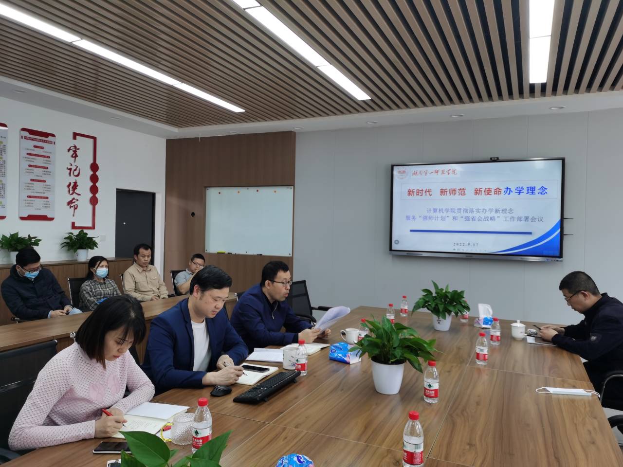 随后,院长满君丰领学了《贯彻落实学校办学新理念,服务“强师计划”和“强省会战略”的实施意见》,并就办学新理念学习作动员发言。他指出:一是要做好新专业申报工作。2022年学院将申请数据科学与大数据、数字媒体技术2个新专业,2023年将申报网络空间安全、工业互联网两个新专业。二是要强化课程的“两性一度”,要提高课堂教学、实践教学、毕业设计等教学质量。三是要推进考研课程改革,专业教师要加强学生的考研专业指导。四是要加强创新创业实训,以学院双创中心为平台,强化学生创新实践能力,引导学生参与各类学科专业竞赛,提高学生工程实践能力。