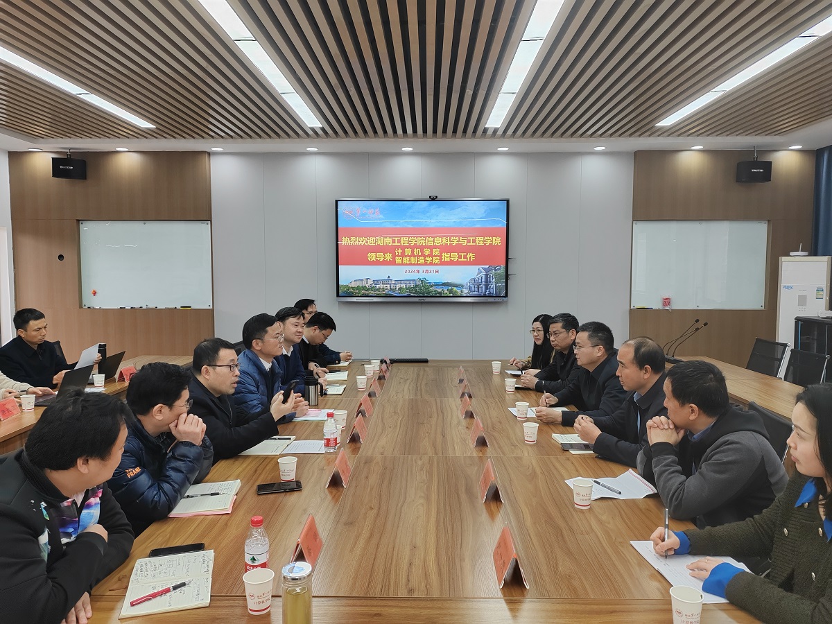 3月21日,湖南工程学院信息科学与工程学院院长张细政、党总支书记何宏一行7人来万象城官网AWC万象城娱乐、智能制造学院开展交流座谈,AWC万象城娱乐书记刘立勇、院长杨恒伏,智能制造学院院长满君丰,两学院分管教学科研副院长、专业系部主任等参加了座谈会,会议由杨恒伏主持。
