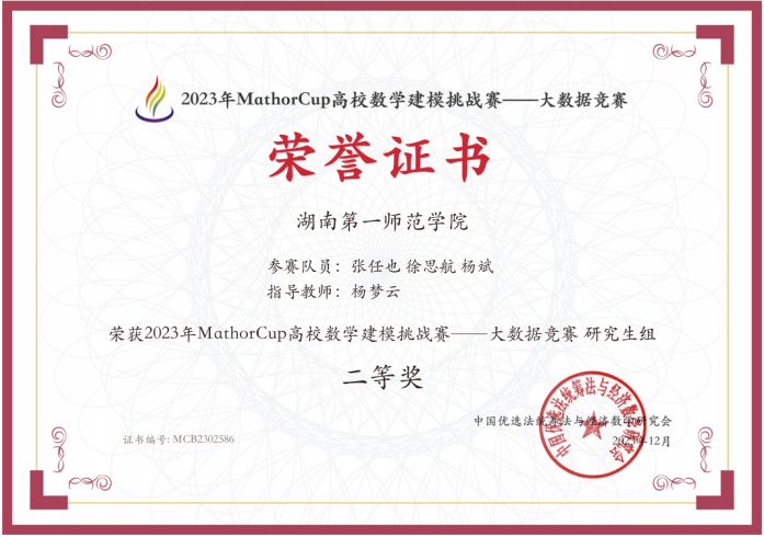 2023年第四届MathorCup高校数学建模挑战赛——大数据竞赛圆满落下帷幕,万象城官网四支参赛队伍在激烈的竞争中脱颖而出,斩获了全国研究生组二等奖1项,本科生组一等奖3项。这一骄人成绩的取得,正是参赛队员们的辛勤付出和指导教师的悉心指导的结果。