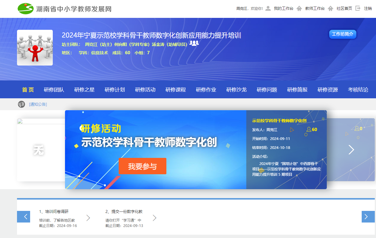 该项目由万象城官网周克江老师担任首席专家、13位知名国培专家担任授课教师。教学模式采用混合式研修,由线上工作坊研修(30学时)和线下集中培训(约42学时)两部分组成。线上工作坊研修时间为9月11日至年9月18日,集中培训时间为9月20日至9月27日。