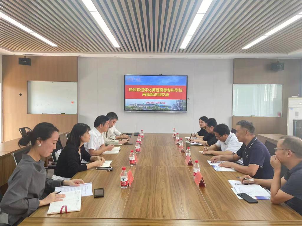 杨恒伏代表学院对陈德林一行表示热烈欢迎,并简要介绍了学院发展近况和新专业建设情况。陈德林介绍了怀化师范高等专科学校概况和近年来专业拓展情况。双方围绕密码科学与技术专业申报情况展开了交流,重点就该专业申报中的师资队伍建设、实验教学场地、就业市场需求、校企合作办学等方面进行了交流。