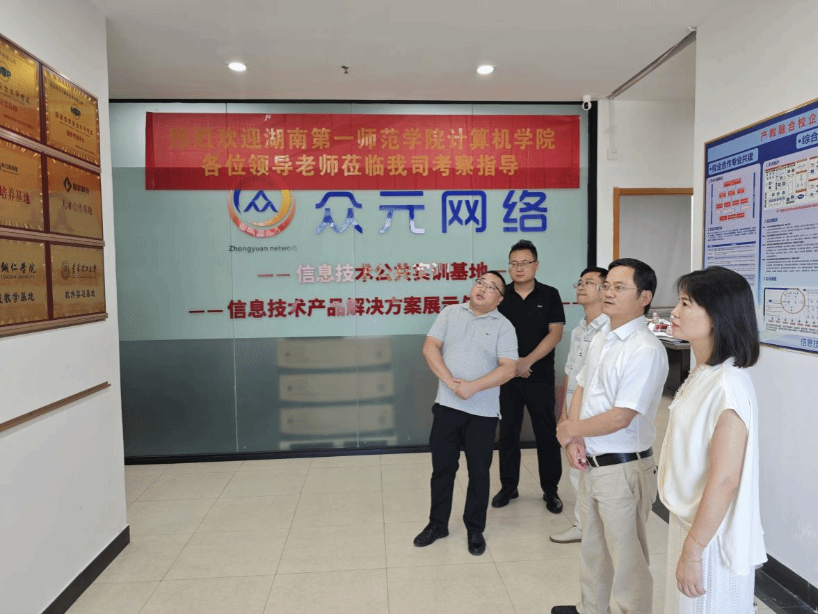7月1日,AWC万象城娱乐院长杨恒伏、院党委副书记陈奕及专业老师叶君炎、辅导员汤艳一行,前往长沙众元网络有限公司走访看望“新工科新航向梦之队”暑期“双百行”实践团众元分队学生。